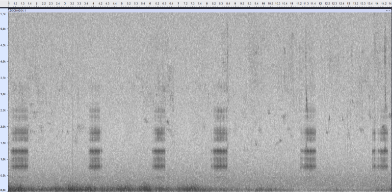 Tambourinage : Il est peu sonore, beaucoup plus discret que celui du pic épeiche. Dans l'exemple il y a de 19 à 23 percussions très rapides qui durent plus d'une seconde, c'est plus long que le pic épeiche dont le tambourinage dure moins d'une seconde. Le début est parfois un peu hésitant mais il est ensuite régulier tandis que celui du pic épeiche est décroissant.